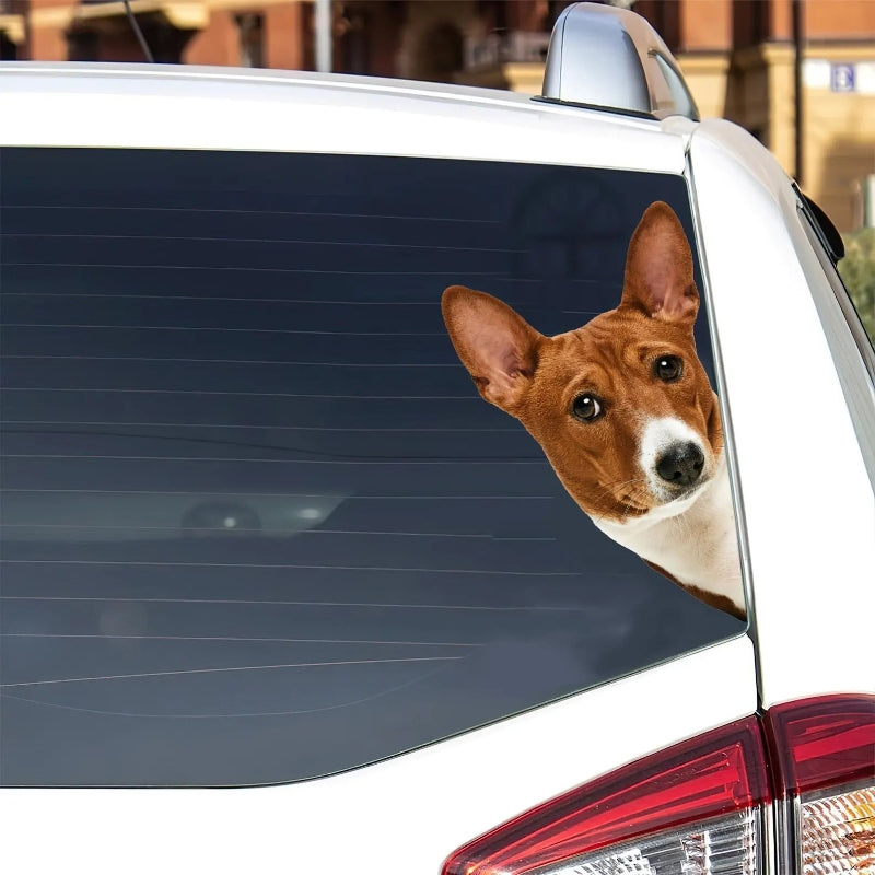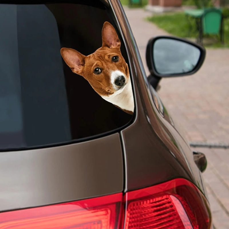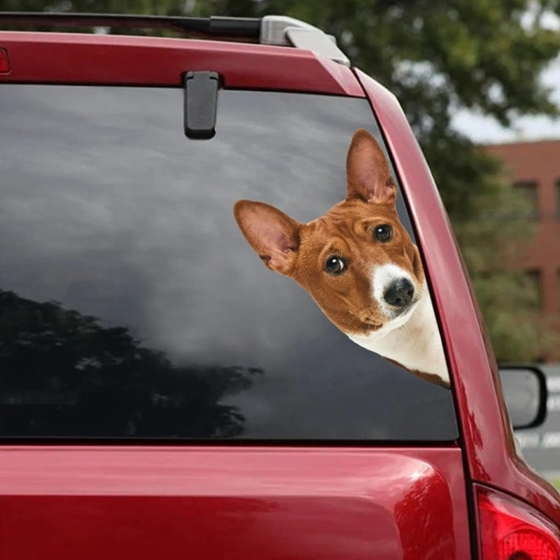 Basenji Dog - Peekaboo Dog Head Car Sticker - DS023