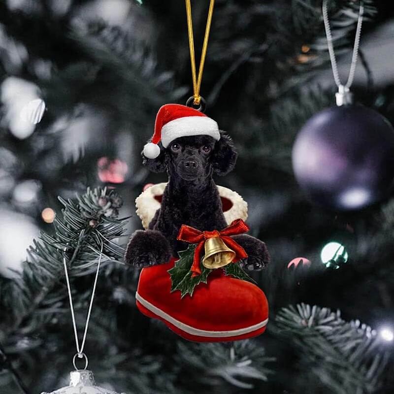 Black Poodle In Santa Boot Christmas Hanging Ornament SB047