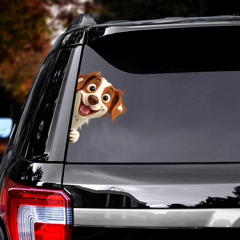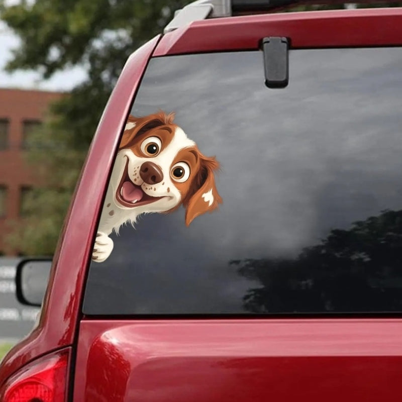 Brittany Spaniel Dog - Peekaboo Dog Head Car Sticker - DS046
