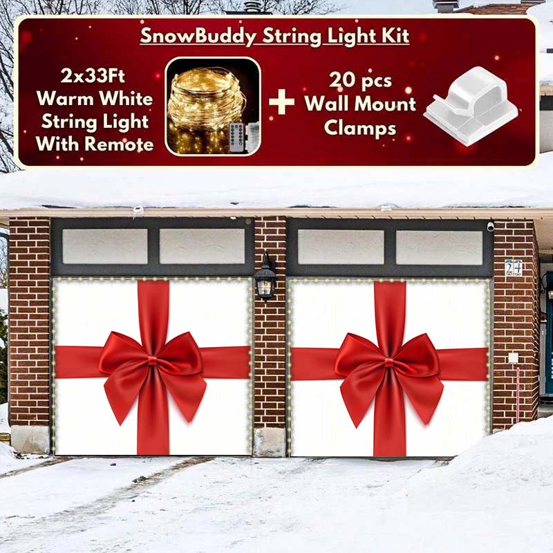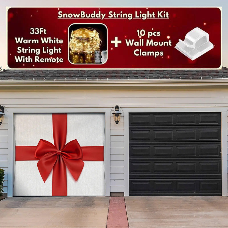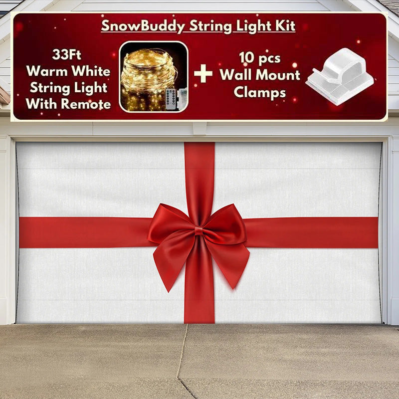 You now have the option to add the string light kit to your order at 50% Off and turn your garage into a true winter wonderland. The kit includes 1x 33ft warm white string light, a remote control, and 10x sticky wall mount clamps.