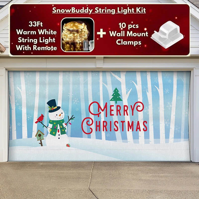 You now have the option to add the string light kit to your order at 50% Off and turn your garage into a true winter wonderland. The kit includes 1x 33ft warm white string light, a remote control, and 10x sticky wall mount clamps.