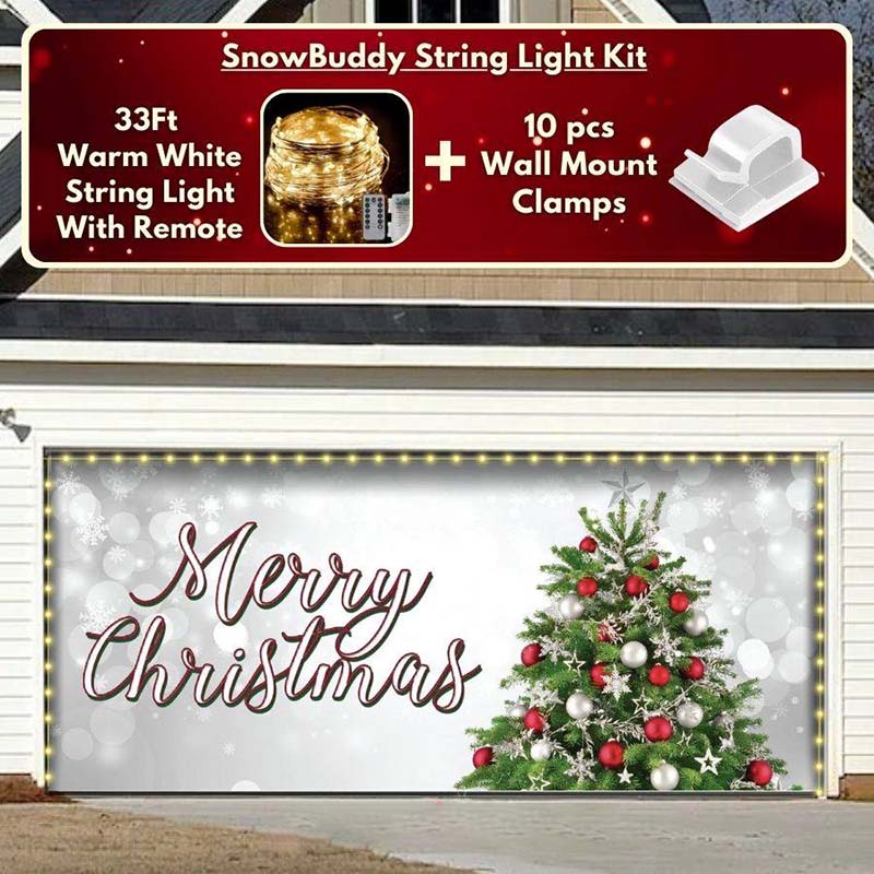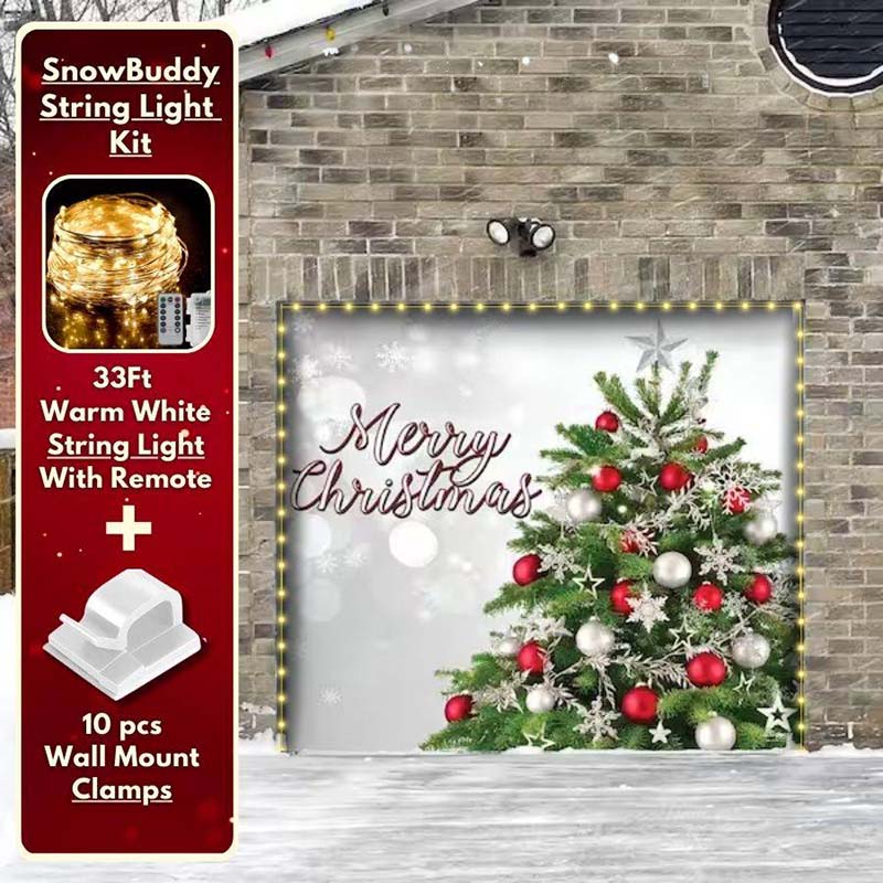 You now have the option to add the string light kit to your order at 50% Off and turn your garage into a true winter wonderland. The kit includes 1x 33ft warm white string light, a remote control, and 10x sticky wall mount clamps.