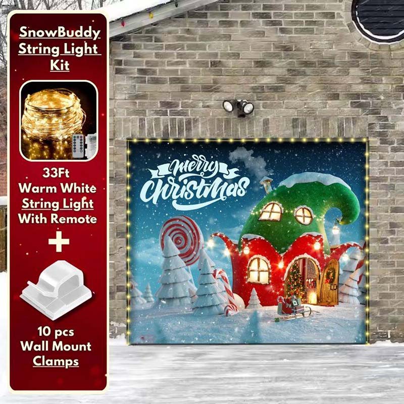 You now have the option to add the string light kit to your order at 50% Off and turn your garage into a true winter wonderland. The kit includes 1x 33ft warm white string light, a remote control, and 10x sticky wall mount clamps.