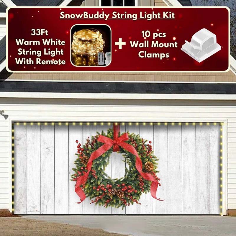 You now have the option to add the string light kit to your order at 50% Off and turn your garage into a true winter wonderland. The kit includes 1x 33ft warm white string light, a remote control, and 10x sticky wall mount clamps.
