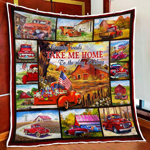Country Roads Take Me Home - Red Truck A299 Premium Blanket