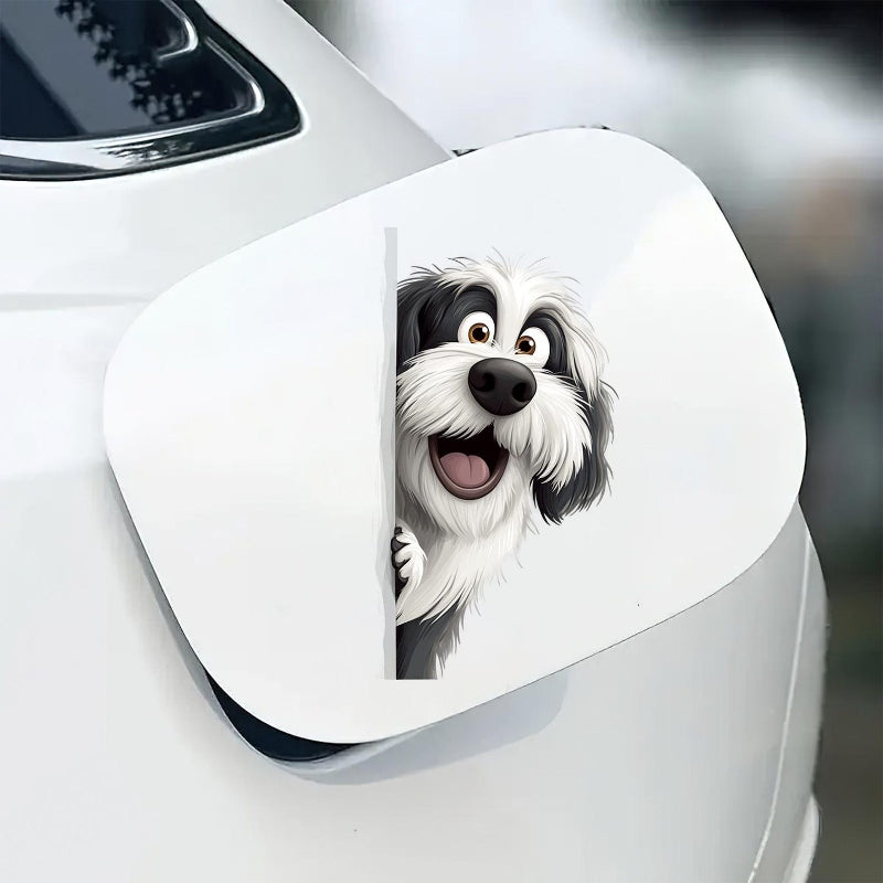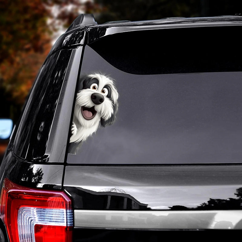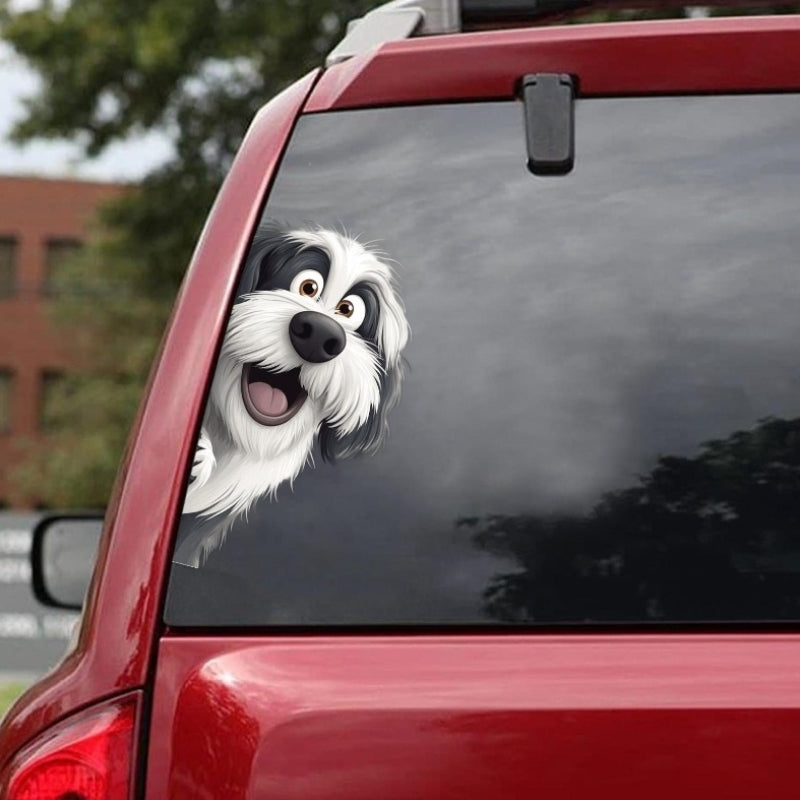 English Sheep Dog - Peekaboo Dog Head Car Sticker - DS003