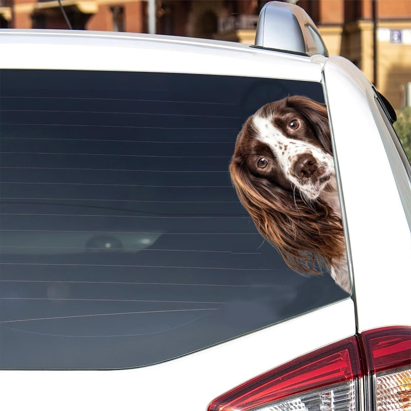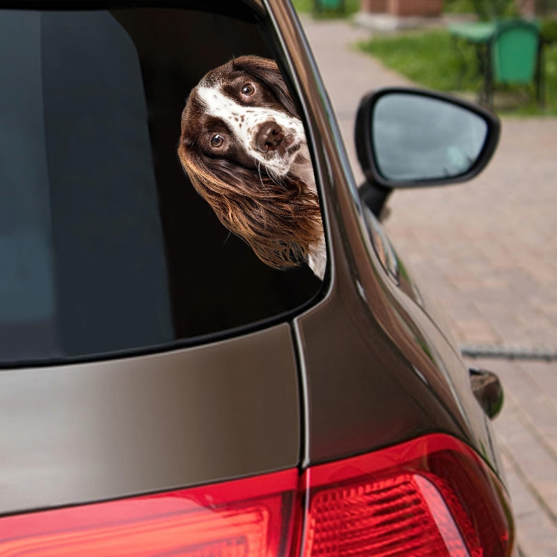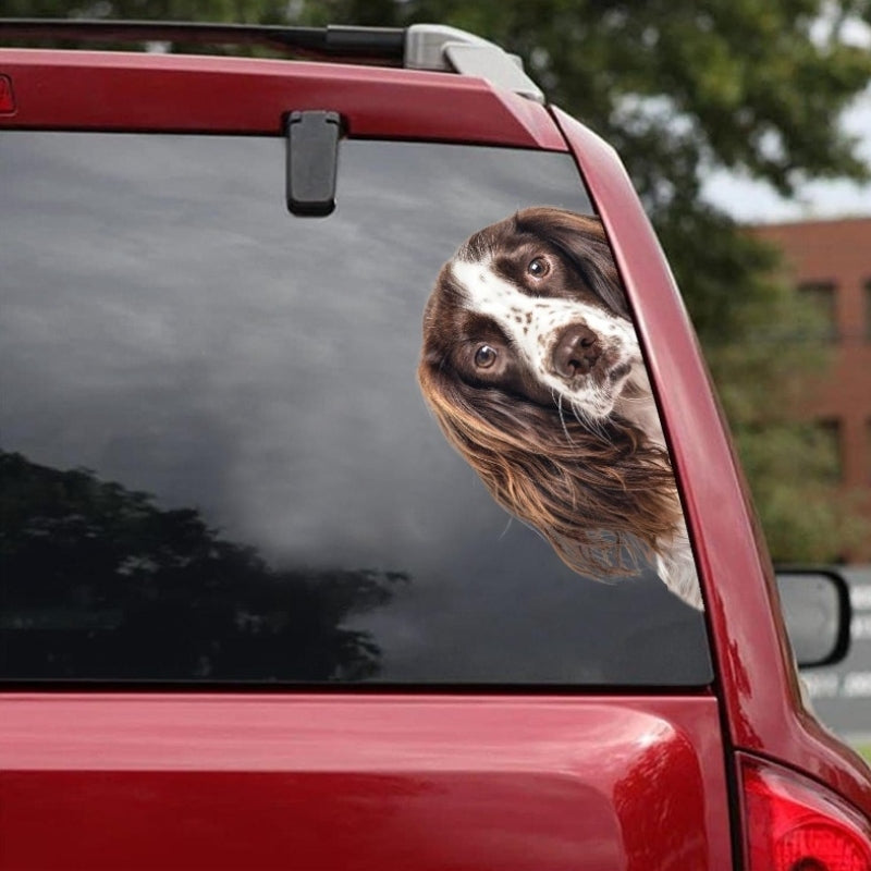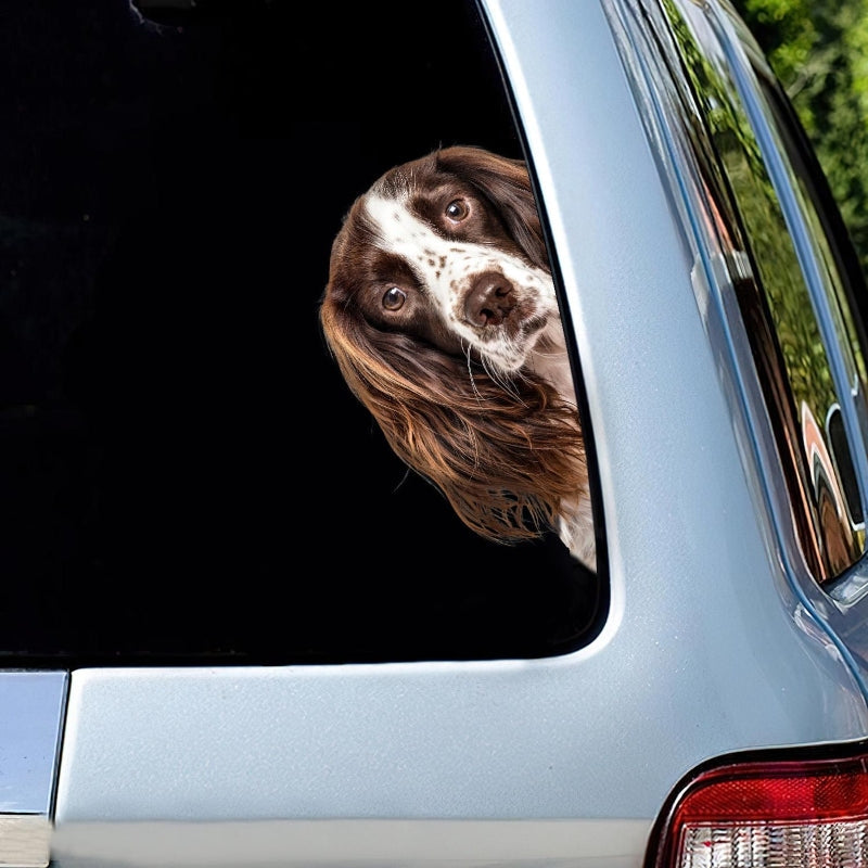 English Springer Spaniel Dog - Peekaboo Dog Head Car Sticker - DS015