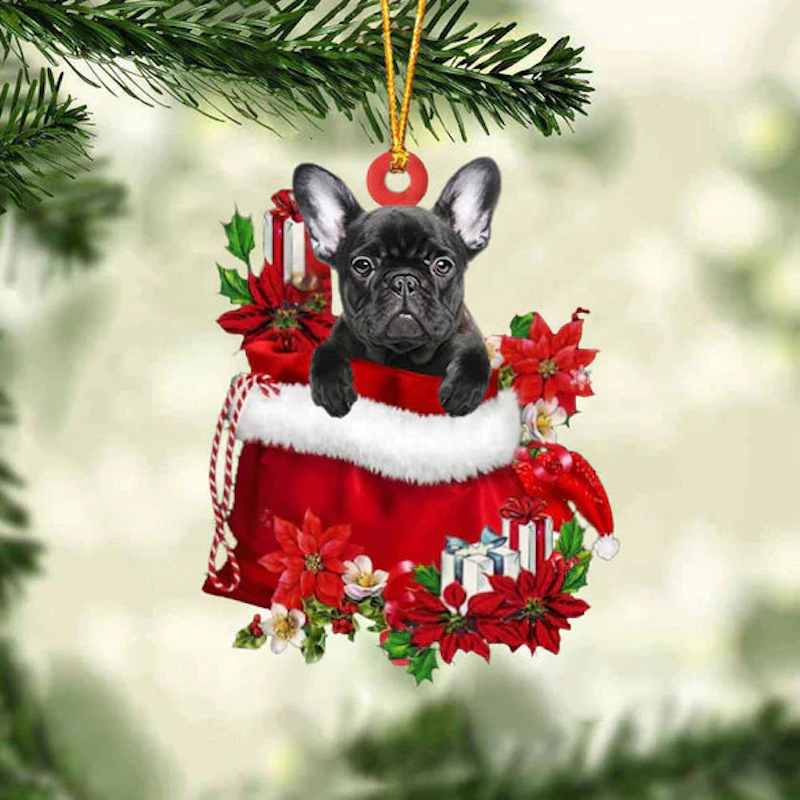 French Bulldog In Gift Bag Christmas Ornament GB086