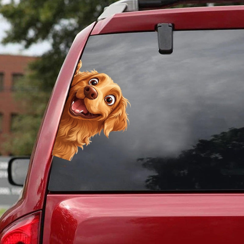 Golden Retriever Dog - Peekaboo Dog Head Car Sticker - DS055