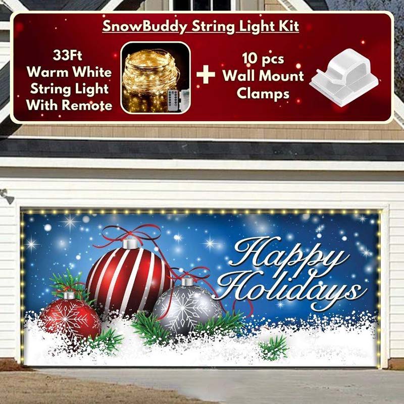 You now have the option to add the string light kit to your order at 50% Off and turn your garage into a true winter wonderland. The kit includes 1x 33ft warm white string light, a remote control, and 10x sticky wall mount clamps.