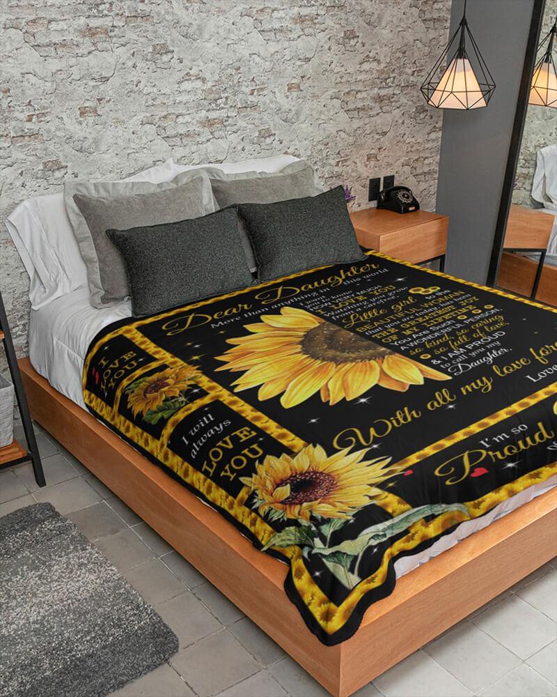 Lovely Gift For Daughter - From Mom - I Love You Sunflower Blanket F020 - Premium Blanket