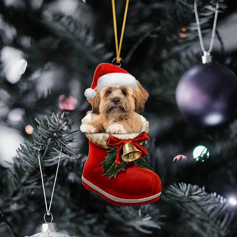 Lhasa Apso In Santa Boot Christmas Hanging Ornament SB045