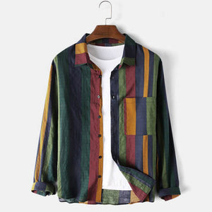 2022 Men's Striped Cotton Linen Breathable Long Sleeve Shirt