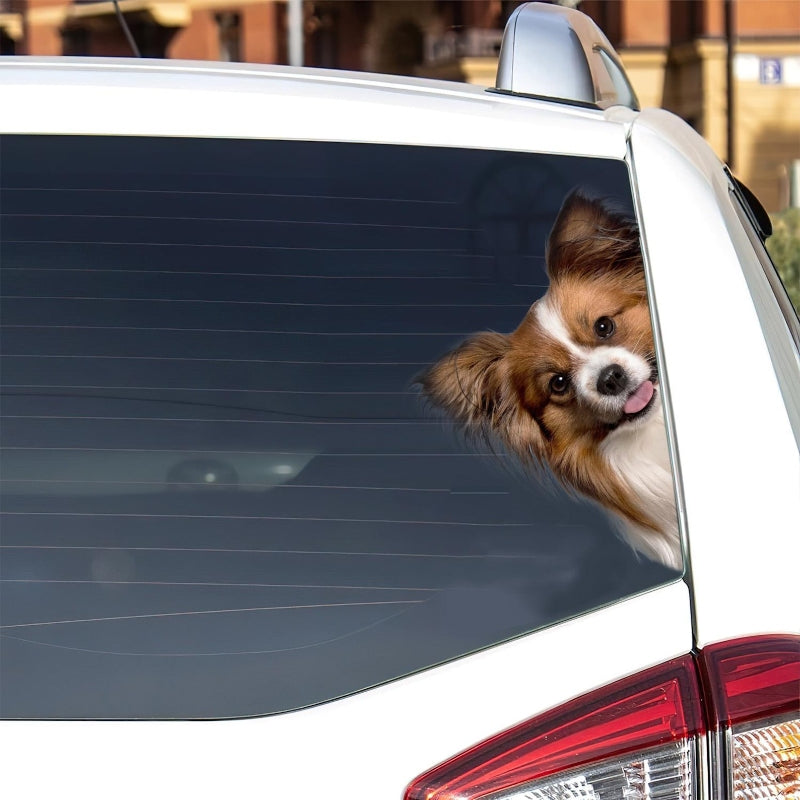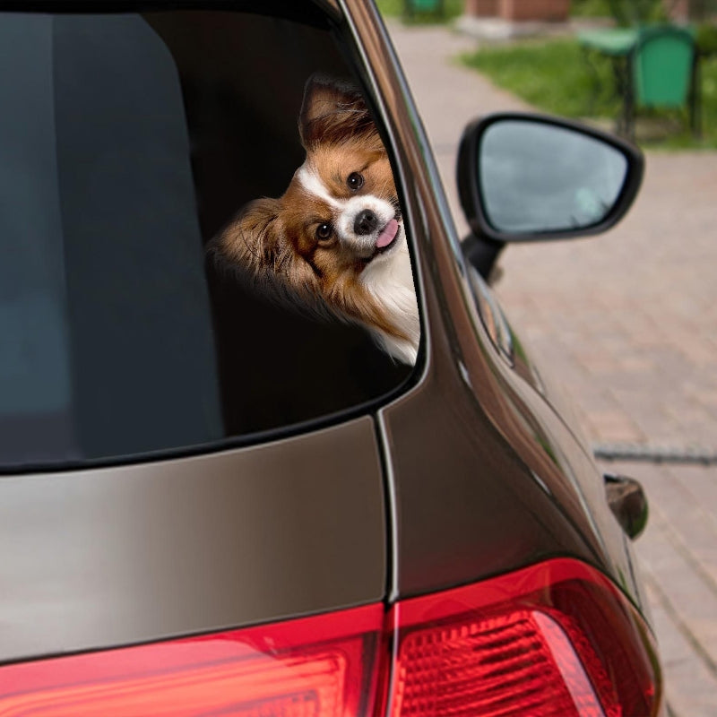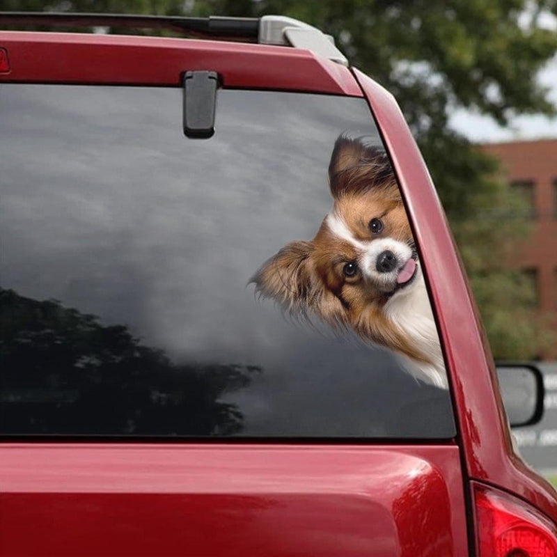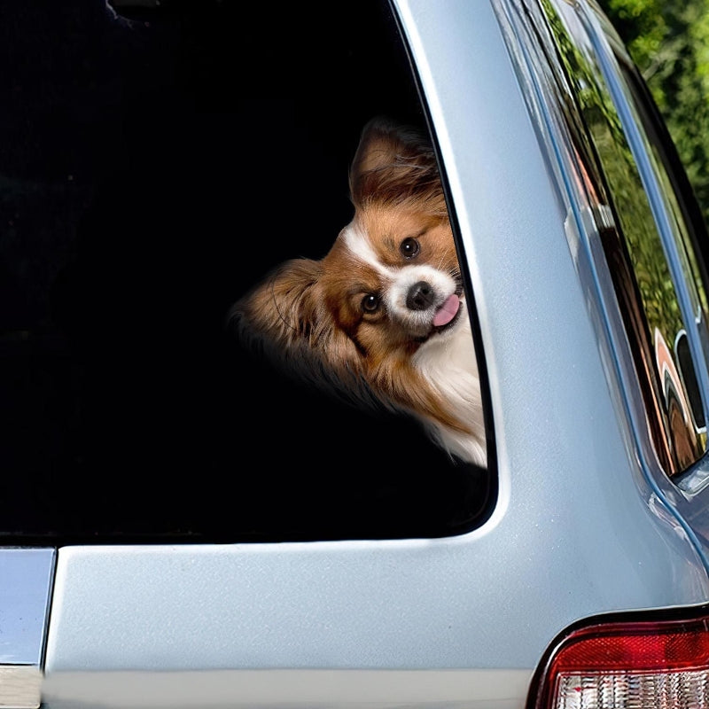 Papillon Dog - Peekaboo Dog Head Car Sticker - DS012