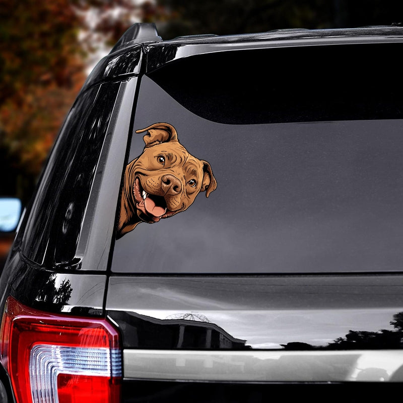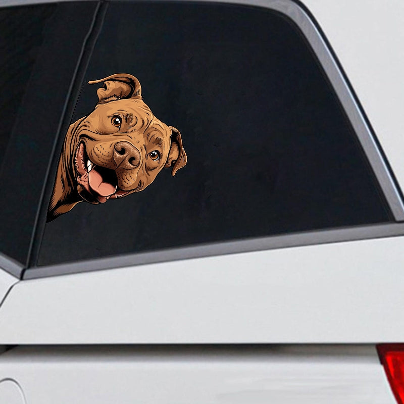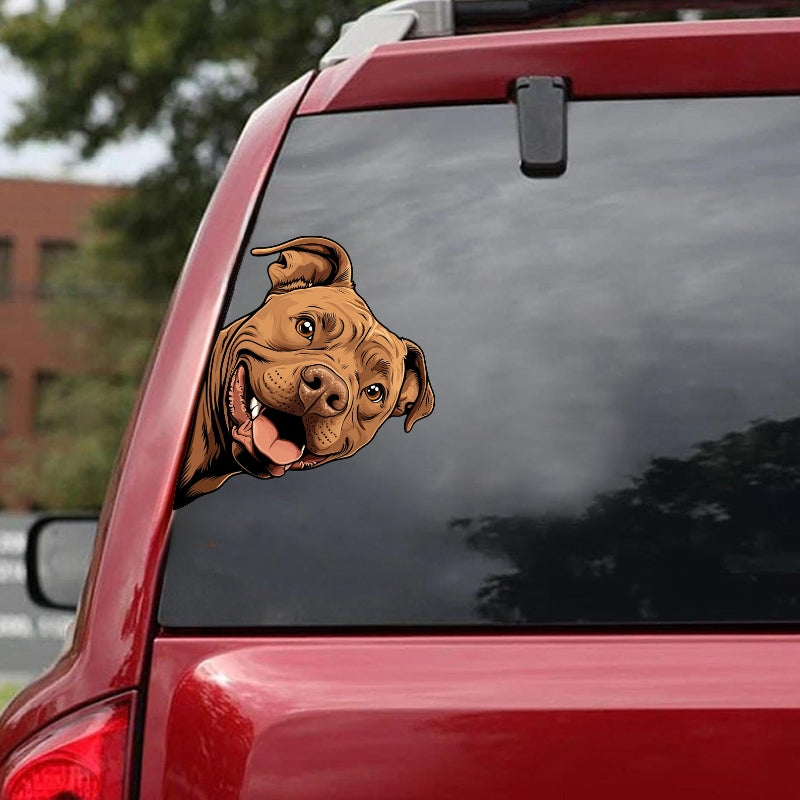 Pitbull Dog - Peekaboo Dog Head Car Sticker - DS056