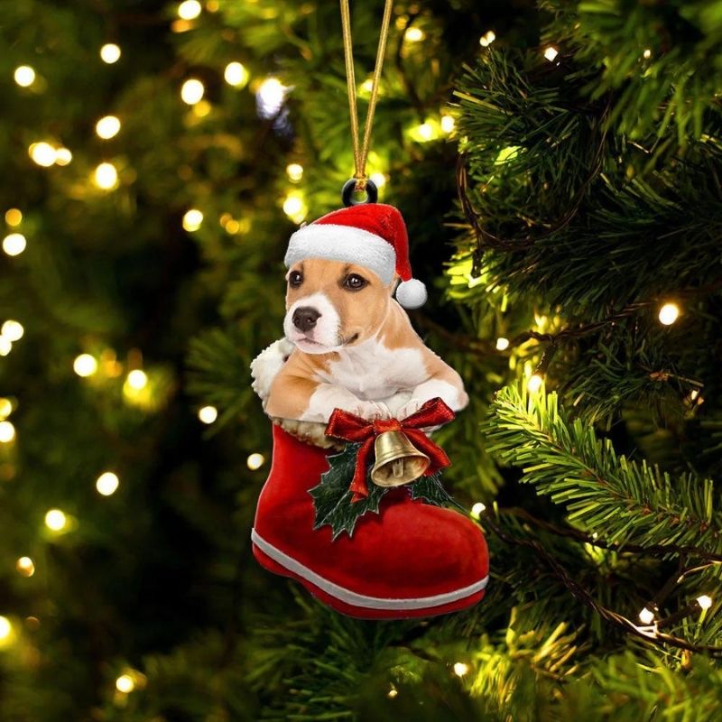 Pitbull In Santa Boot Christmas Hanging Ornament SB089