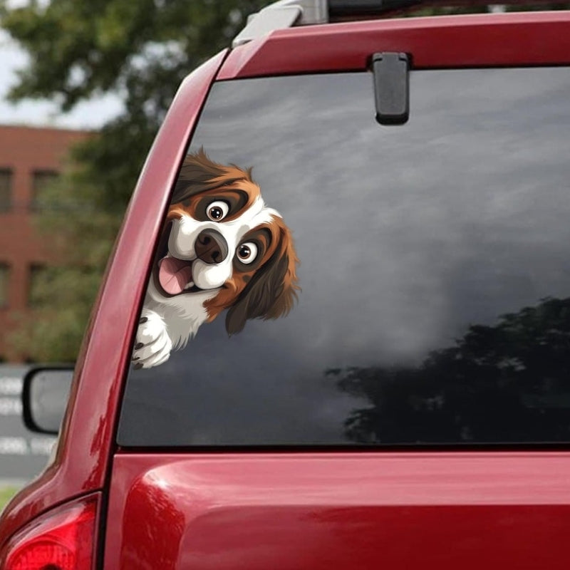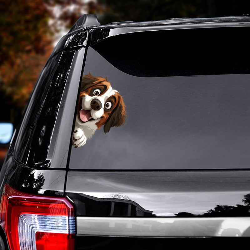 Saint Bernard Dog - Peekaboo Dog Head Car Sticker - DS032