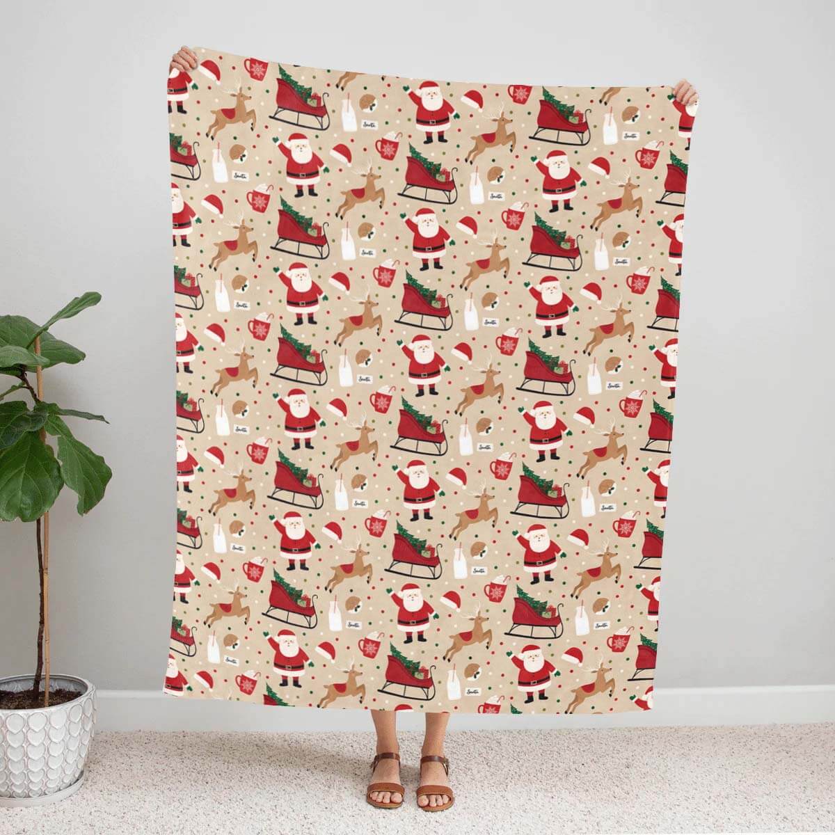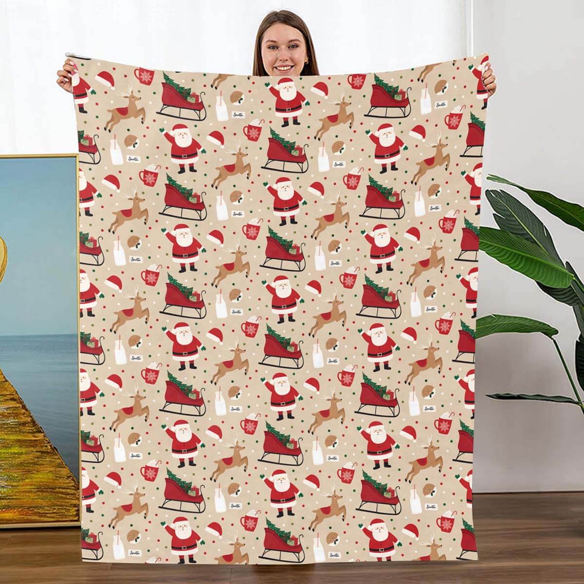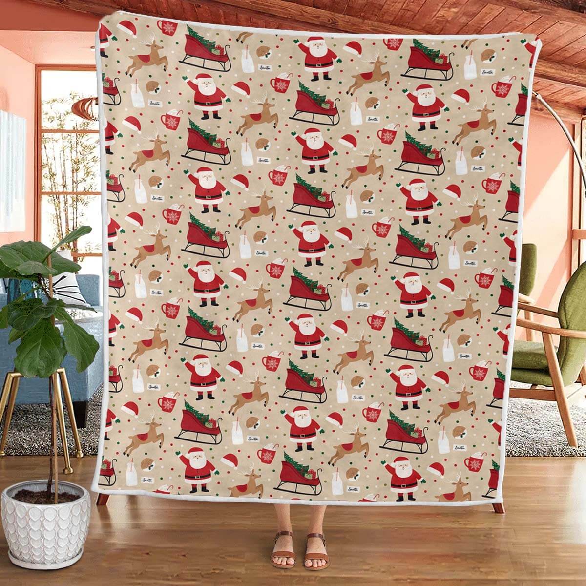 Santa Claus and Elk Sled - A515 - Christmas Premium Blanket