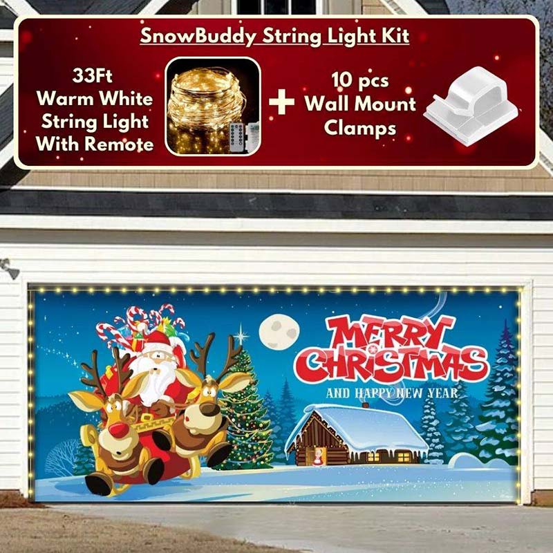 You now have the option to add the string light kit to your order at 50% Off and turn your garage into a true winter wonderland. The kit includes 1x 33ft warm white string light, a remote control, and 10x sticky wall mount clamps.
