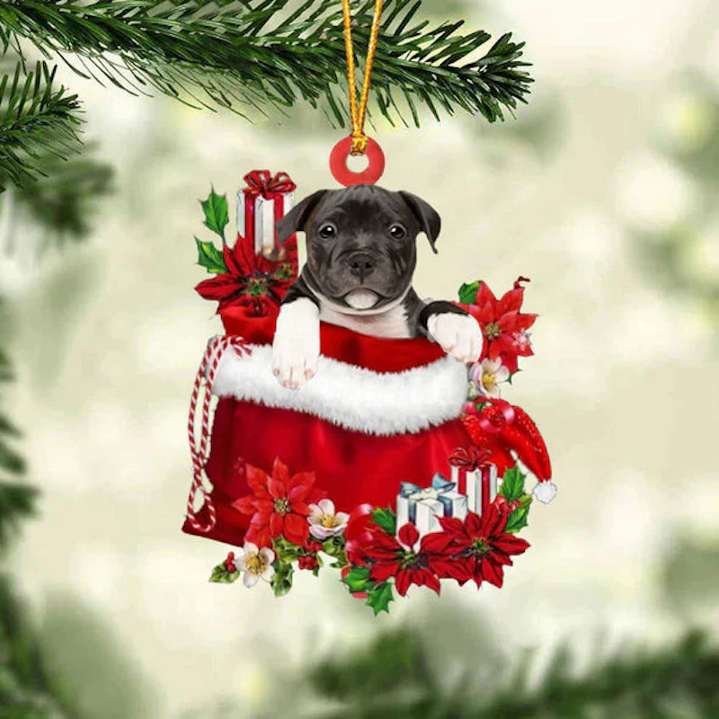 Staffordshire Bull Terrier In Gift Bag Christmas Ornament GB043